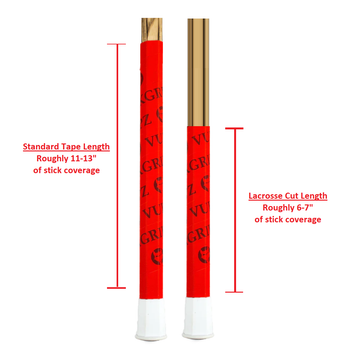 Lacrosse Tape Covers Roughly 6-7" of the Lacrosse Stick when using VukGripz Wrapping Instructions